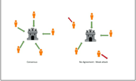 A Byzantine fault or Byzantine General’s Problem is a condition typically seen in a (specifically distributed ) computer system, where one or more components fail and exhibit inconsistent behavior by sending conflicting information to the different parts of the system. A Byzantine generals’ problem also abstractly describes coping mechanisms for these types of failure. Consider a fortress surrounded by Byzantine generals. They are geographically separated and can communicate only through messages. They can either retreat or attack. The important thing